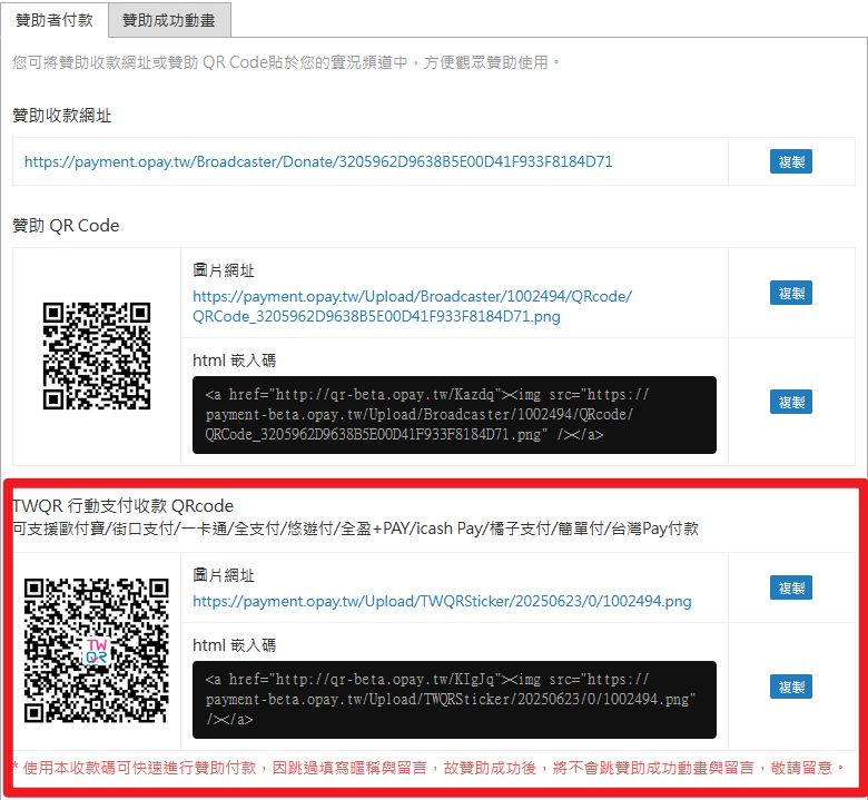 實況主服務新增TWQR收款碼的功能囉!